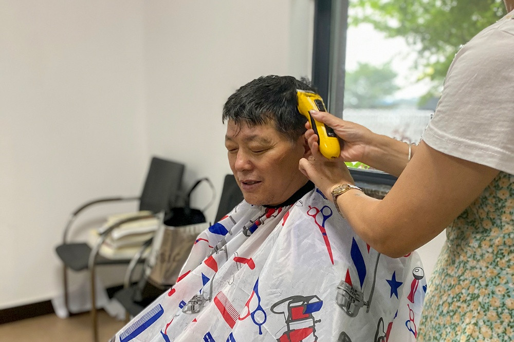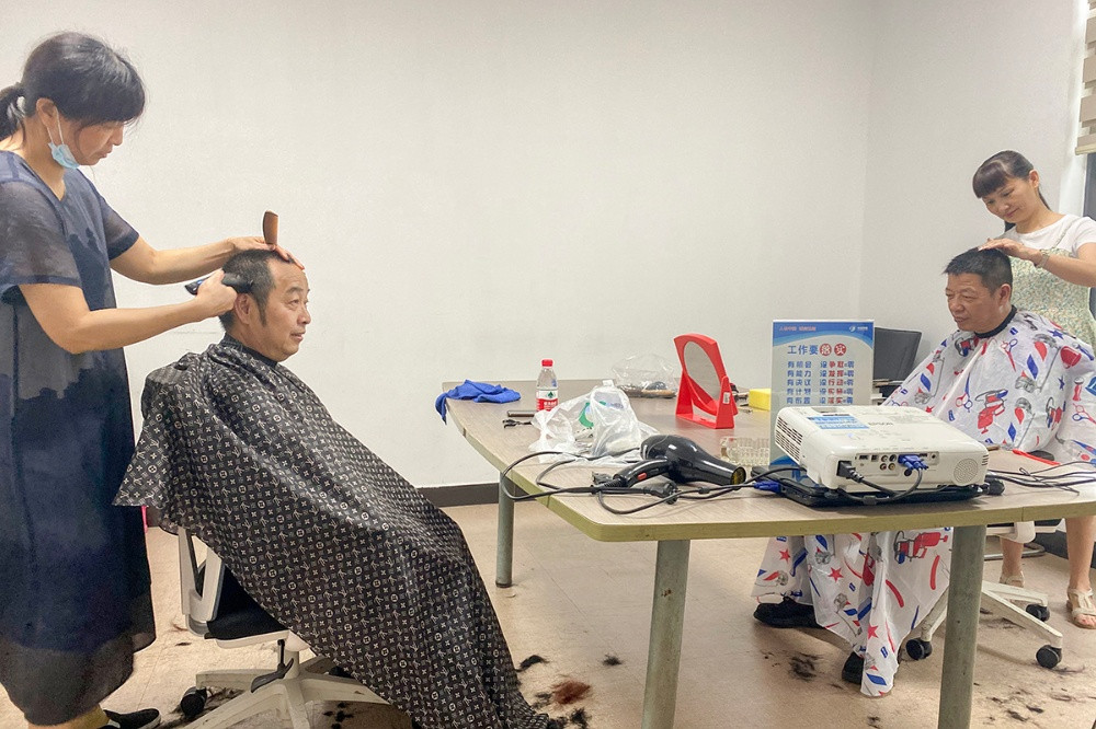 At noon on June 18, the two hairdressers invited by the company came to the event venue and asked these fathers their requirements for their own hairstyles. With their skilled skills, they trimmed their hairstyles to their satisfaction. There is no fancy and fashionable style, but the barber "cuts" everyone's smiles, and at the same time "cuts" Zhongda Xincai's deep care for employees.