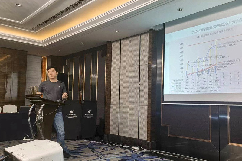 中達新材總經理吳利陽通報了公司上半年相關經營數據:銷售額完成年初既定目標的53.55%,與去年同期相比增長38.24%;利潤完成年初既定目標的54.98%,與去年同期相比增加28.1%;生產產量跟去年同期基本持平。吳總表示,在后疫情時代這樣的成績來之不易,這份成績凝結了公司上下全體員工的心血和汗水,如日方升,更進一竿,2022年對于中達新材來說是至關重要的一年,中達新材必須一鼓作氣,乘勝追擊,要通過持續推進IPO上市工作,謀劃市場策略及開發核心產品,引入全面預算管理,完成信息化項目的順利交付和運行,高標準執行質量管理等,實現突破,更進一竿。