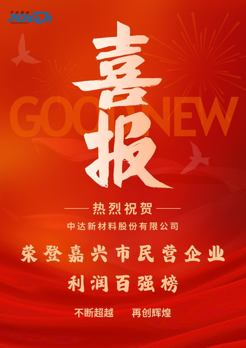 11月5日,嘉興市工商聯(lián)發(fā)布2024年嘉興市民營企業(yè)百強系列榜單,包括2024年嘉興市民營企業(yè)營收100強、利潤100強、研發(fā)投入100強、納稅100強、外貿(mào)出口100強五張榜單,中達新材成功上榜利潤100強!